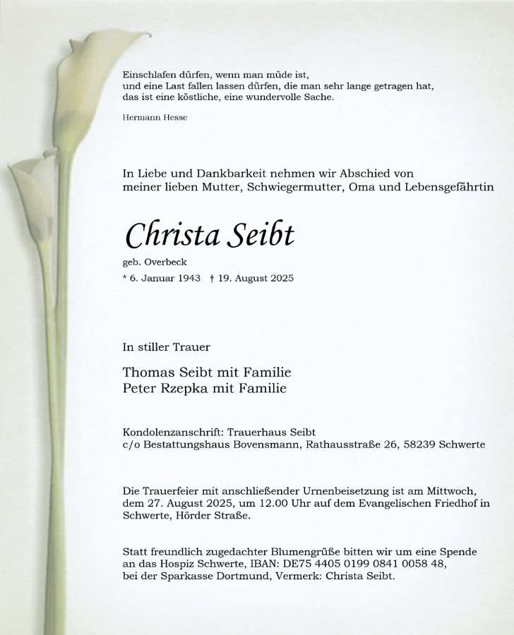 Christa Seibtgestorben am 19. August 2025