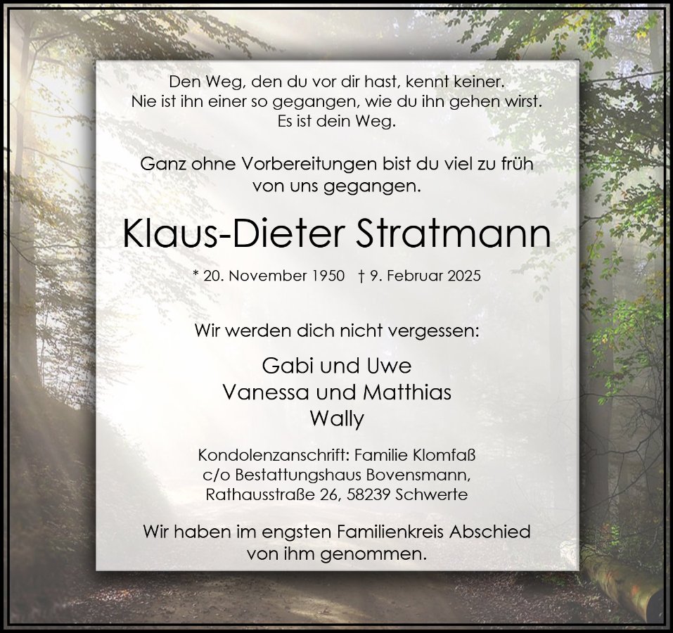 Klaus-Dieter Stratmanngestorben am 9. Februar 2025